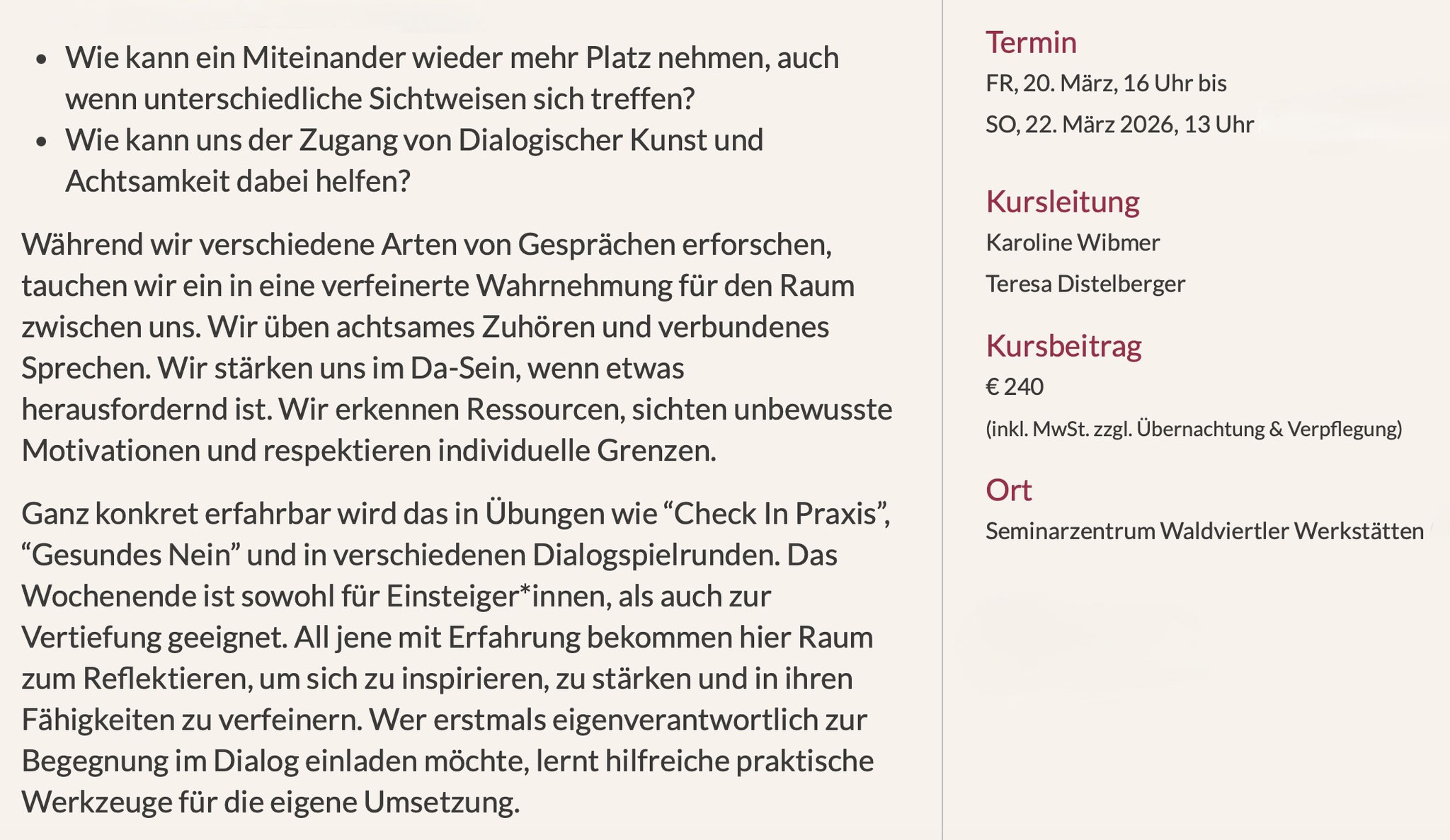 Hier findest du Hinweise zu meinen Workshops und Veranstaltungen.