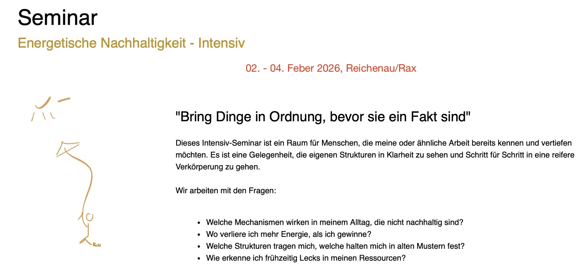 Die angesprochenen Themen und energetischen Prozesse sind nicht zur Diagnose oder Behandlung von medizinischen oder psychischen Erkrankungen gedacht.